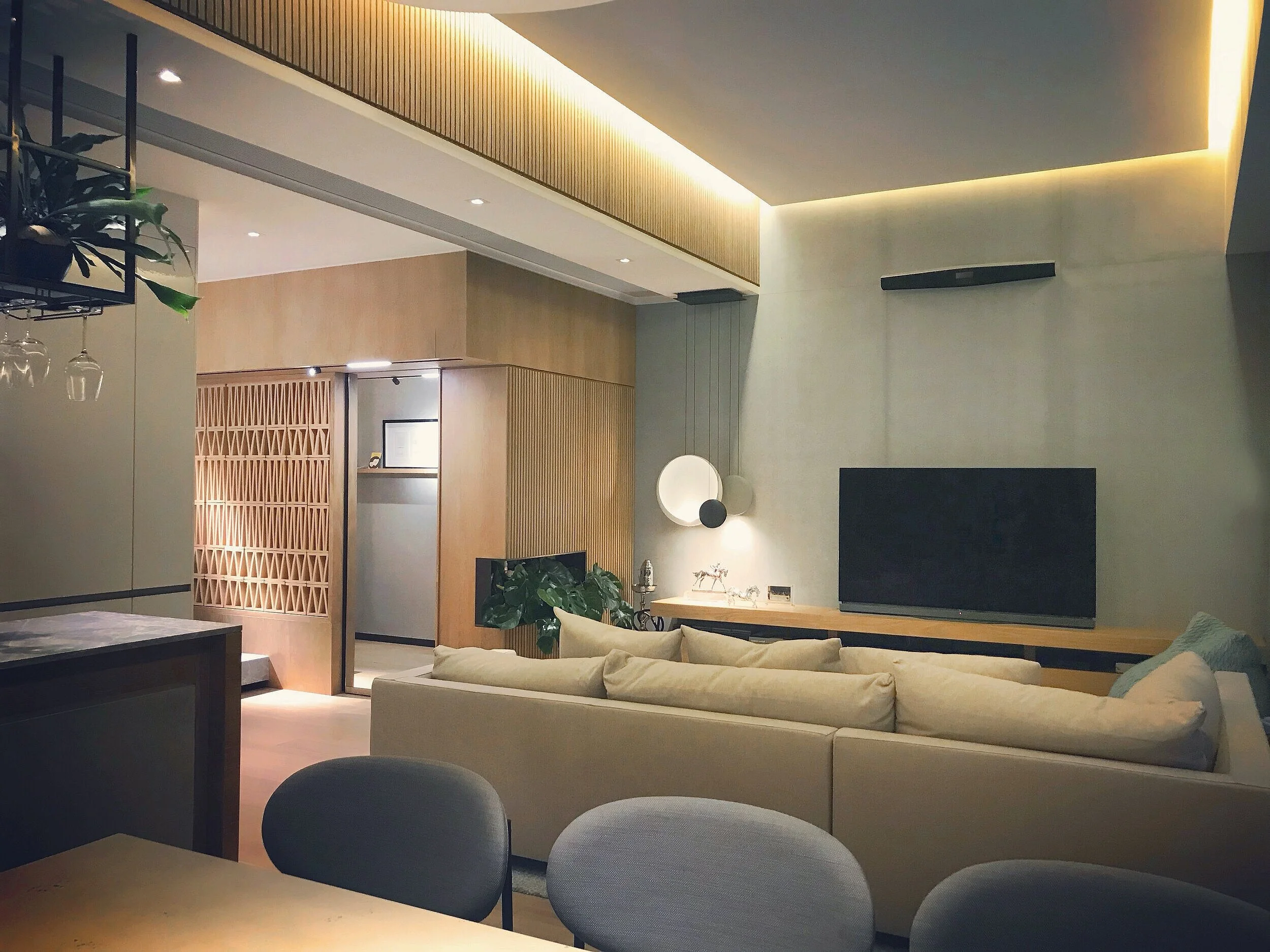 Warm tones and sophisticated elegance describes the spaces of this duplex unit